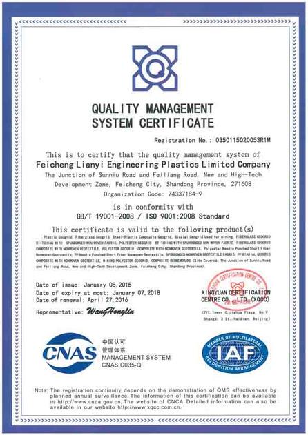 肥城聯(lián)誼工程塑料有限公司擁有德國(guó)KARLMAYER高速經(jīng)編機(jī)、MALIM0多軸向織機(jī)、道尼爾織機(jī)和兩條雙向格柵生產(chǎn)線,兩條單向格柵生產(chǎn)線,掌握了門澤爾公司的涂層技術(shù)。公司主要生產(chǎn)和經(jīng)營(yíng)各類塑料土工格柵、玻纖土工格柵、三維土工網(wǎng)墊、土工網(wǎng)、土工格室、土工布、復(fù)合土工膜等工程材料。
